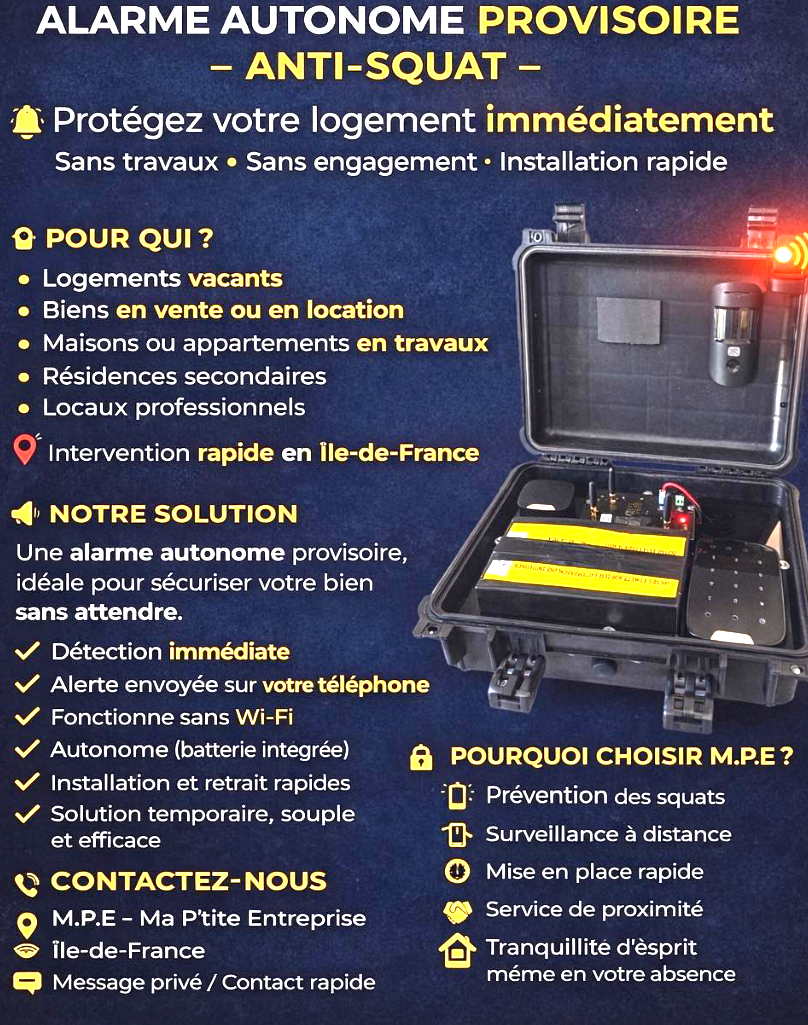 Cette solution est idéale pour les logements vacants, les biens en vente ou en location, les chantiers, les résidences secondaires ou les locaux professionnels nécessitant une protection rapide et fiable.